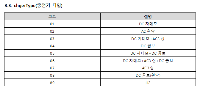 다시 공공데이터 가이드로 돌아가서 어떤 충전기 타입으로 주고 있는지 확인하기!