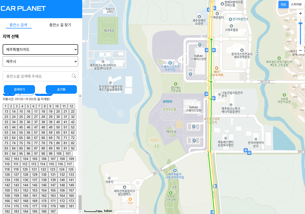 충전소가 별로 없을것 같은곳으로 했는데도 결과값이 너무 많아서 스크롤하기 힘들었다...