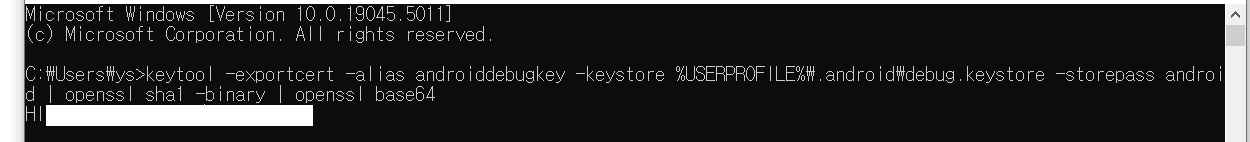 그러고 OpenSSL 실행해서 내 해시 키 값을 만들었다.
