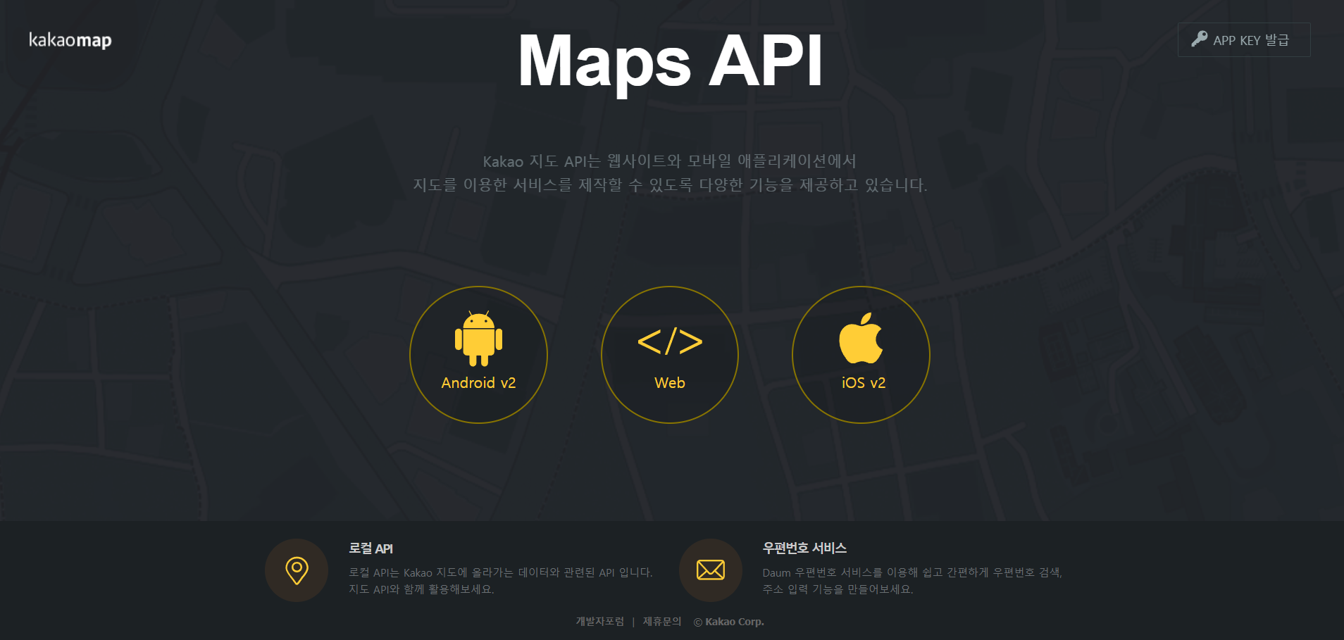 <script type="text/javascript" src="https://dapi.kakao.com/v2/maps/sdk.js?appkey=kakao_javascript_key&libraries=services,clusterer,drawing"></script>