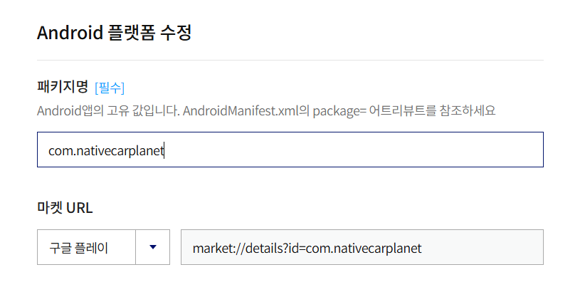 패키지명을 넣으니까 자동으로 마켓 URL도 넣어졌다!
