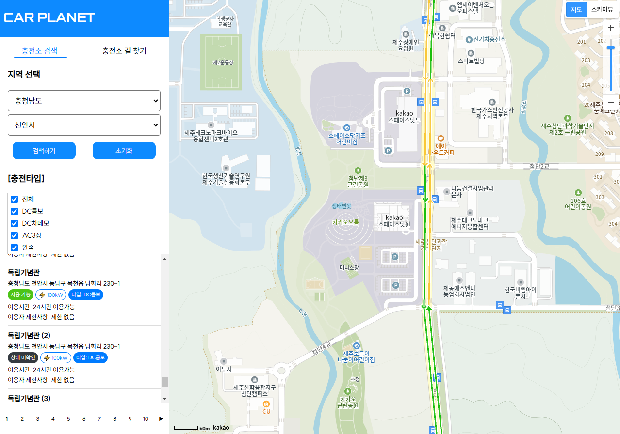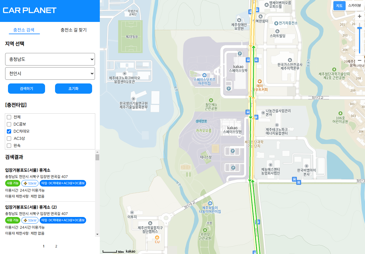 지금 이렇게 체크박스 선택 옵션으로는 DC콤보, DC차데모, AC상, 완속 이렇게 제공하고 있다.