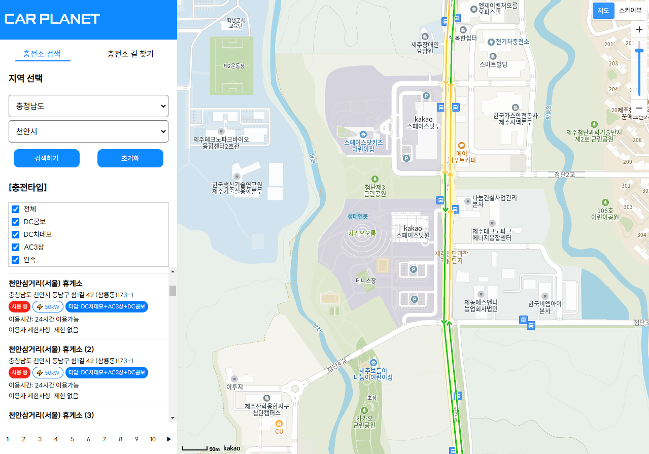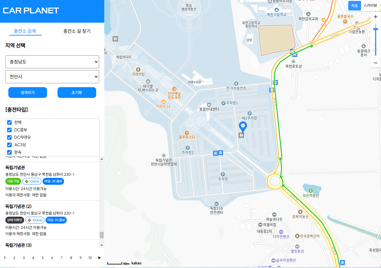 ✅검색결과에 나온 충전소 위치들의 lat,lng(위도,경도) 이용해서 카카오지도에 전달 + 마커표시