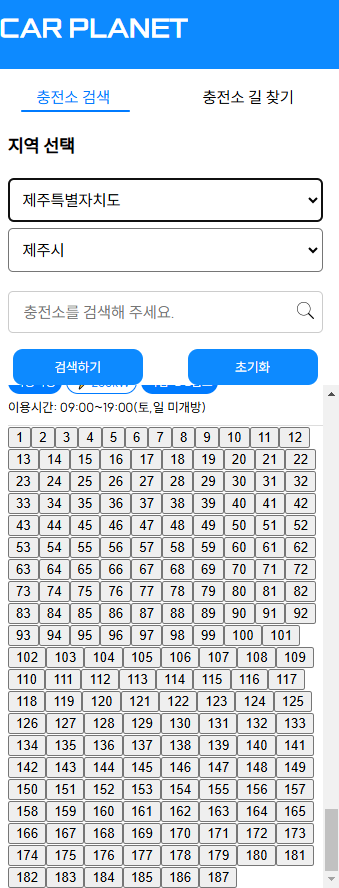 한 결과값에 대한 list는 30개씩 가져오게 했다! 스크롤 해서 30개의 충전소 리스트를 확인할 수 있다.