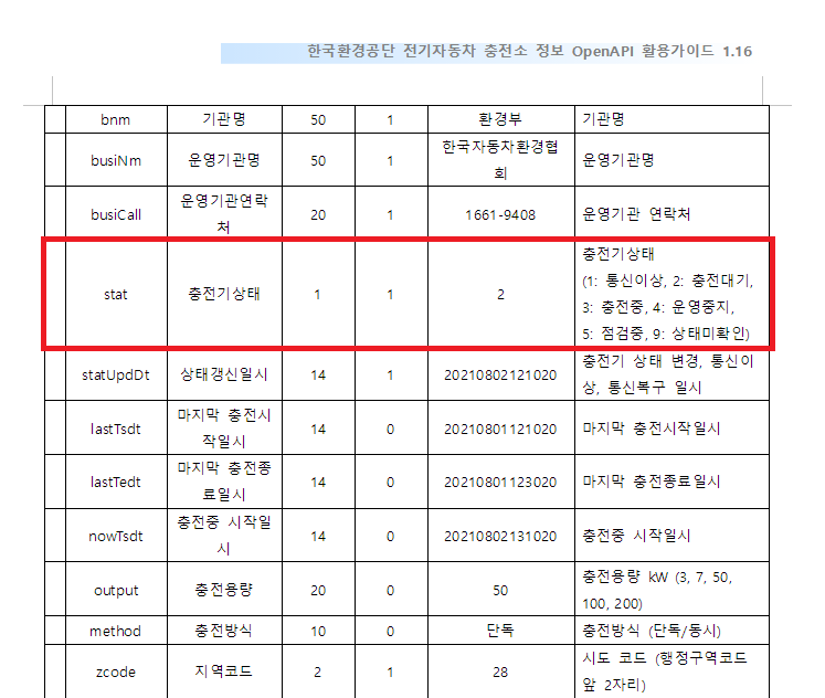 각각의 충전기 상태에 해당하는 값들을 API 호출 시에 불러오고
