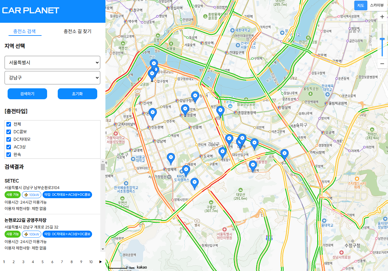 사용자 편의성을 위해 검색한 지역의 리스트를 받고 그 리스트에 해당하는 충전소의 마커를 전부 지도에 표시했다.