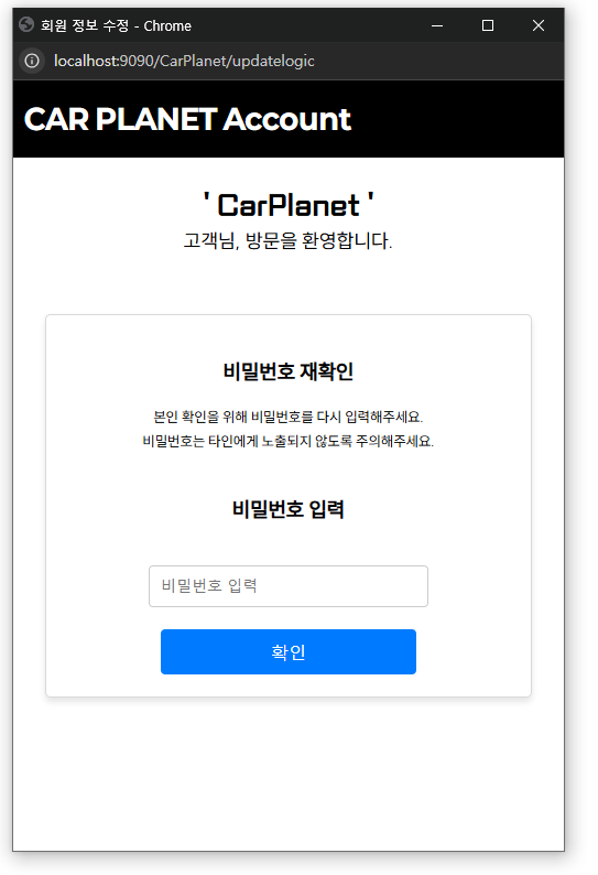 그 후 개인 정보 관리 버튼을 누르면 비밀번호 재확인을 해서 본인인증 프로세스를 거치게 된다.