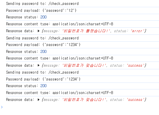 비밀번호가 확인되면 서버에서 클라이언트로 다시 체크 성공 값을 보내고
