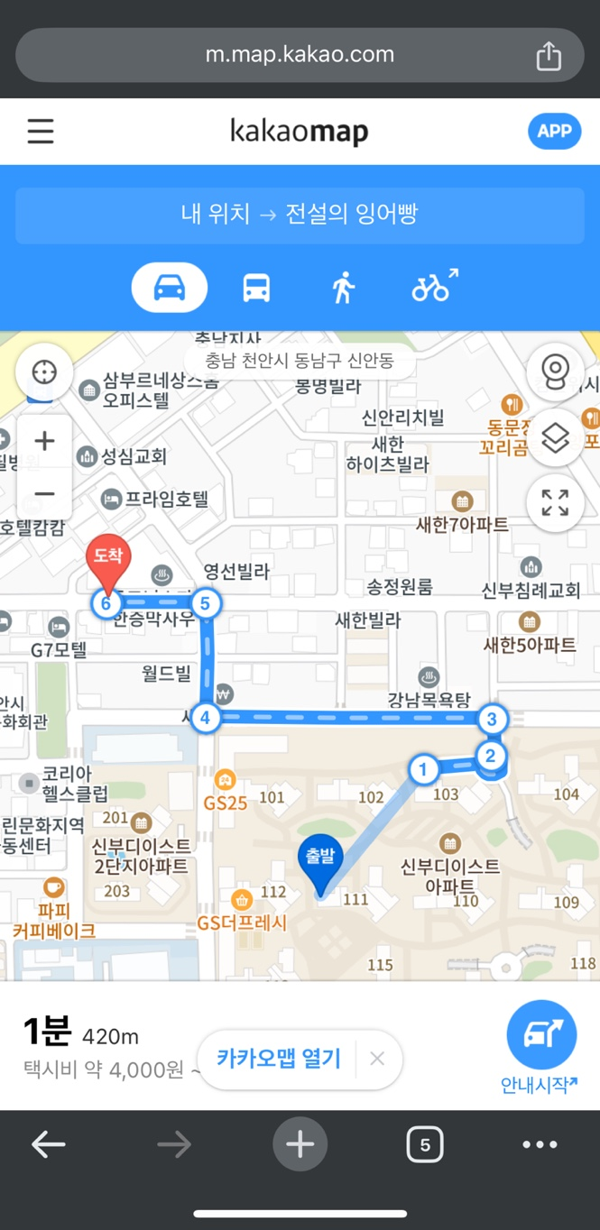 모바일에서는 카카오 맵 어플과 연결이 되거나, 어플이 없을 경우 웹으로 열 수 있게 제공되고 있었다.