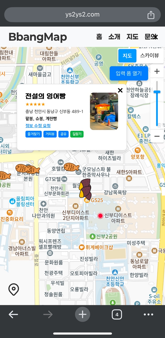 웹 사이트 주소 : https://www.ys2ys2.com/bbangmap/